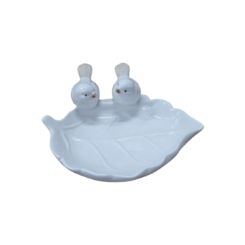 7411616 - Petiskeira Folha Branca C/ 2 Passarinhos Porcelana Smyp-009 (36)
